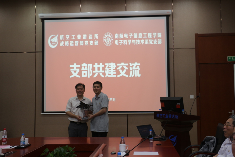 中航工业雷达所党委副书记,纪委书记唐治安,公司党委书记聂东林分别代表各自单位致辞并互赠纪念品,希望双方支部以结对共建为载体,能够进一步相互学习、优势互补,积极探索组织联建、党员互动、活动互联、工作互助、资源共享、经验共鉴、共同发展等有效途径,更加有力地推动双方党建工作、有力地促进双方科技合作与发展。