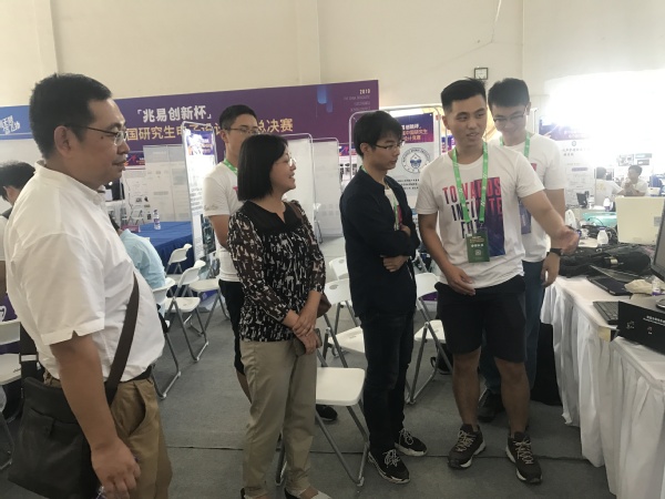 在总决赛阶段的现场展示和作品答辩,公司员工更是展示了南航人的风采,努力拼搏、脚踏实地,凭借着严谨治学的态度、积极创新的追求、昂扬向上的精神,同时将学校的荣誉扛在肩上,最终在中国研究生电子设计竞赛的舞台上斩获佳绩!答辩前夕,参赛队友们也不敢懈怠,他们不断模拟着答辩现场的场景。答辩当天,研究生院副经理王亚彤老师、研究生院张廷赟老师、指导老师葛芬老师也前往决赛现场,参观同学们的作品,为大家加油打气!