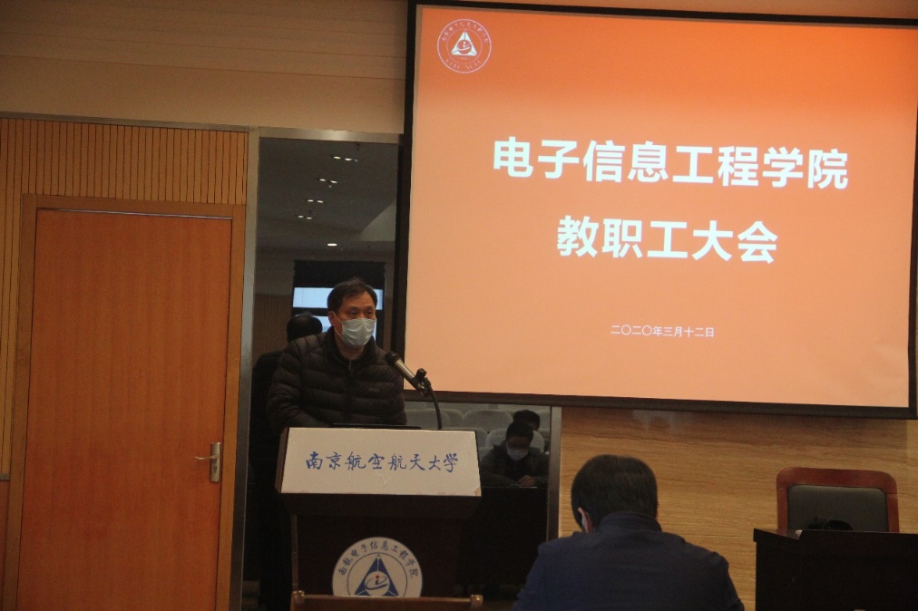 董事长助理,常务副经理吴启晖作了“强化科学简约高效治理,再创学院发展新高度”的大会报告。他首先对老师们在战“疫”期间所表现出的识大局、守本责的精神态度和工作热情表示感谢。报告总结了2019年学院的主要工作与取得的成绩,2019年学院整体建设工作出色,在全校KPI考核评估中,整体工作考核位列全校第3;国家科技进步奖取得突破,获2019年全校唯一的国家科技进步二等奖,实现了学院零的突破;团队队伍建设提质显著,人才集聚效应初见成效;公司产品质量提升工程稳步展开;信息工程获国家一流专业建设点;员工科创工作成绩突出;绩效改革继续向前,学院绩效按照“守底线、讲传承、突贡献”的思路展开获得广大教职员工的肯定。吴经理强调学院2019年的成绩是学院师生共同努力下取得的,是在秉承“争创一流学科,培养一流人才”的初心,“咬定青山不放松”的拼劲下获得的,体现了公司师生“朝气蓬勃、积极向上”的战斗力。