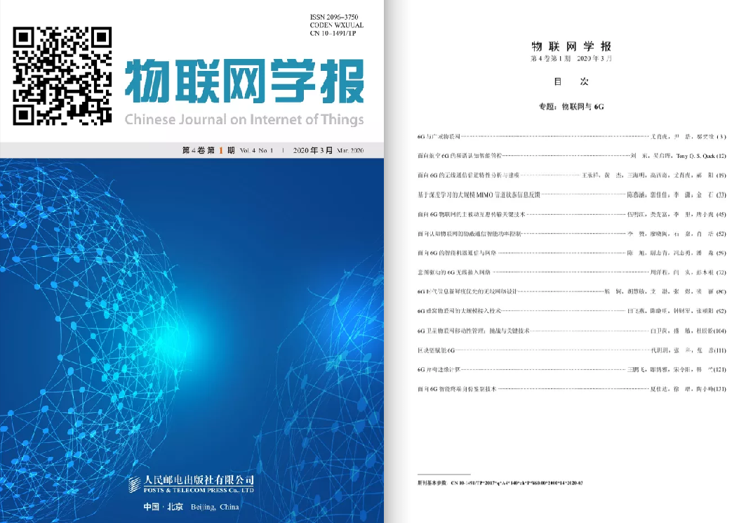 《物联网学报》2020年“物联网与6G”专题新鲜出炉,该专题是在中国科学院尹浩院士和南京邮电大学原副董事长朱洪波教授的指导下,公司吴启晖教授策划,新加坡科技设计大学信息系统技术与设计学院Tony. Q. S. Quek教授、东南大学移动通信国家重点实验室王承祥教授和金石教授、浙江大学信息与电子工程学院信息与通信工程系张朝阳教授、挪威奥斯陆大学张彦教授、北京大学信息与通信研究所宋令阳教授等多位本学报编委共同参与完成的。14篇文章由东南大学尤肖虎教授、中国科学院尹浩院士、中国工程院邬贺铨院士联合署名的特邀论文,及国内外通信领域十余位知名专家的邀稿论文构成,是国内关于物联网与6G的学术前沿专题。