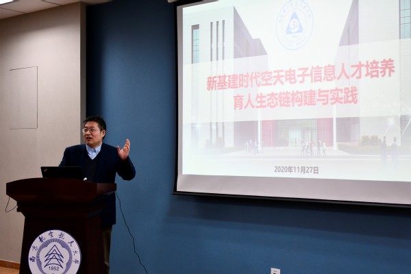 公司董事长助理吴启晖教授做了题为“新基建时代空天电子信息人才培养育人生态链构建与实践”的报告。首先,他简要介绍了公司的历史沿革、学院设置、团队队伍,提出南航威廉希尔官网建设的“三航”特色,由此阐述了学院面向空天信息人才培养的育人生态链建设,分享了育人生态链在创新实践教学中的优异成绩,提到创新实践育人成果服务国家社会的成效显著。他指出,要强化人才培养中心地位,在“新基建”重大战略背景下打造人才“底座”。