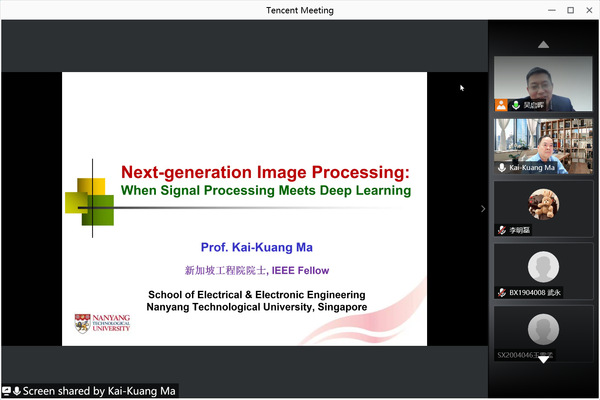 2021年5月7日,来自新加坡南洋理工大学的MA Kai-Kuang教授(马凯光,新加坡工程院院士,IEEE Fellow)应邀为公司师生做了题为“Next-Generation Image Processing: When Signal Processing Meets Deep Learning”的线上学术报告。会议由吴启晖教授主持,220余名师生通过腾讯会议线上参会的方式聆听了报告。