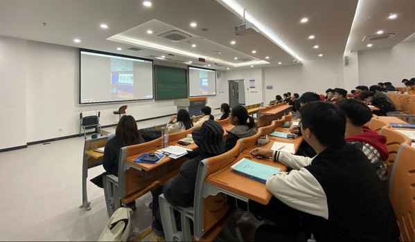 项安黎学姐主要就寝室建设和团队成长与同学们进行交流,将自己寝室四位同学比作“四喜丸子”,分别介绍了各自的性格和特长,寝室四位同学尽管来自祖国各地,生活习惯不尽相同,但他们相互协作,互相帮助,成为了寝室氛围养成的良好典范,也在学业、竞赛、社会实践等方面成就了寝室中每一位同学;阿丽耶学姐则从自己高中到大学的过渡阶段切入,向与会同学们分享了自己进入大学后由于基础薄弱,课程学习效果较差引发的心态变化,虽然普通话说的不好,自己的学业也欠缺很多,但阿丽耶没有放弃,而是积极调整心态与努力方向,与老师和学长学姐交流学习方法与经验,在短短的一年时间实现了成长“逆袭”。
