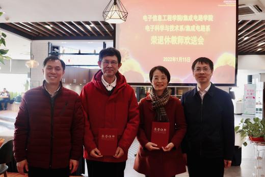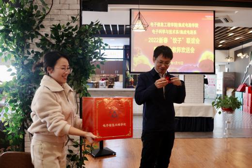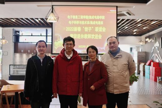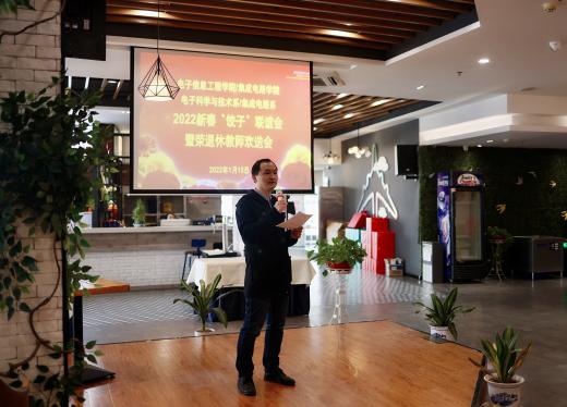 威廉希尔官网电子科学与技术系/集成电路系于2022年1月15日举办了新春“饺子”联谊暨荣退休教师欢送会,开展了包饺子、棋牌和抽奖等活动,为郑步生和崔晓平老师举办了荣退休教师欢送仪式,学院及工会相关领导老师一同参加本次活动,系支部书记黄正宇主持本次活动。