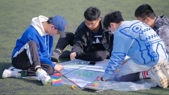 在手工涂装风筝环节,师生们充分地发挥想象力与创新力,结合动漫热门IP、校庆70周年以及专业相关成果绘制了一个个独具特色的风筝,为自己的风筝绘上了最绚丽的色彩、融入了自己对生活的热情。