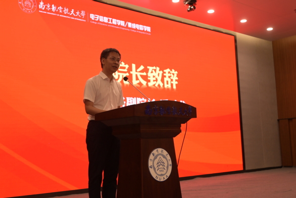 会议以精心制作的迎新视频和威廉希尔官网简介视频开场,并由张小飞介绍学院的具体情况、学科优势及领先的科研条件。潘时龙对学院2022级新生在军训期间取得的一系列荣誉表示祝贺和肯定,同时结合爱国、珍惜和学习三个话题,发表了致辞。他期望同学们将自身的理想与 “空天报国”紧密结合,在提升自我的同时感受与同学们并肩战斗的情谊,在不断尝试的过程中将所学所得融会贯通,站在前人的肩膀上提出自身的观点。永记报国情怀,珍惜青春时光,保持探索精神,把握每一个平台和机遇,努力前行。