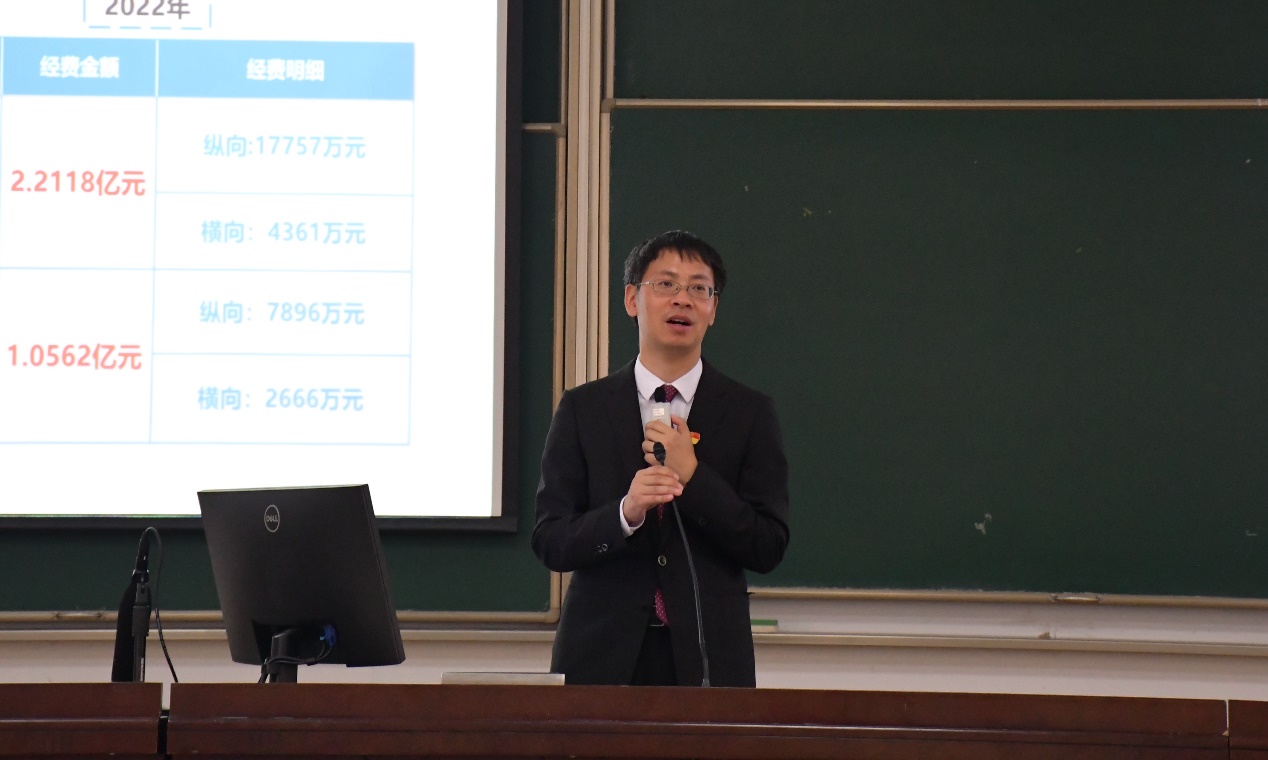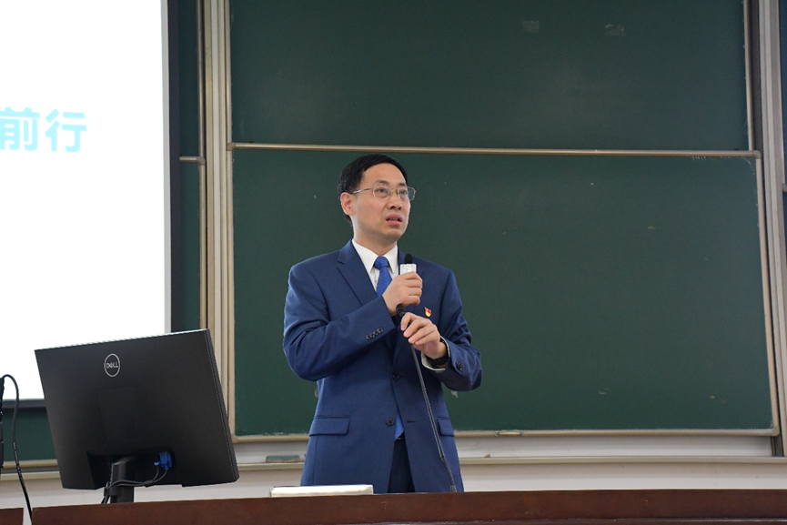随后,学院常务副经理潘时龙作了“行远自迩、踔厉奋发,实现学院高质量发展”的大会报告,报告从党建工作、团队建设、人才培养、团队队伍、科学研究和国际合作六个方面介绍了学院“十四五”以来学院的发展现状,对学院建设发展近年来取得成绩作了详尽介绍,对全院教职工的努力工作表示感谢。对于学院未来发展,他强调,学院下一个发展目标是争创学校下一个“双一流”学科,全体教职工要牢记立德树人根本任务,以党建工作引领学院思政教育和师德师风建设,培育优良的学院文化;要加大开放办学,走出“象牙塔”思考发展,近年来学院各类平台快速发展,国家级人才数量不断增加,希望学院教职工要充分利用学院构建的平台,借助学院优势资源,加快提升自身水平,瞄准国家重大战略需求,在祖国急需的方向上做出更大贡献;要进一步加强产学研合作,主动对接社会需求,进一步提升成果转化能力。