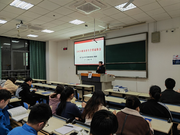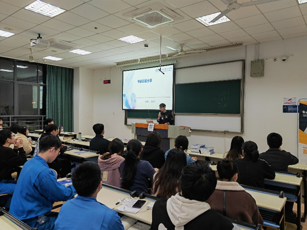 在讲座开始之前,辅导员梅旭鹏先就2020级本科生学情作了通报。他依据学院往届学分统计与推免情况,结合本年级学习情况,为到场同学全面分析了学院近两年来的保研、考研以及就业形势,引导同学们认真分析自己当前的学习状况。