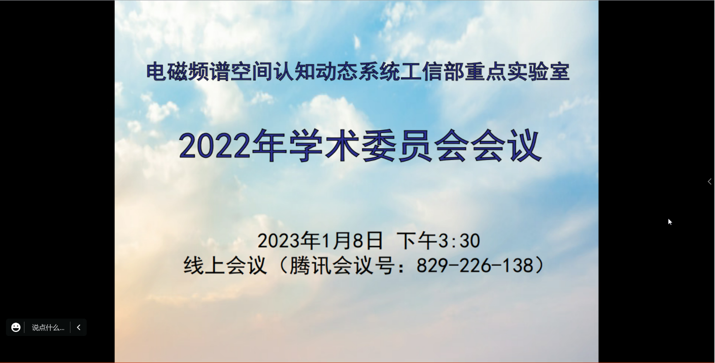 2023年1月8日下午,“电磁频谱空间认知动态系统”工业和信息化部重点实验室第一届学术委员会第四次工作会议(2022年度)顺利召开,本次会议采用线上形式进行。