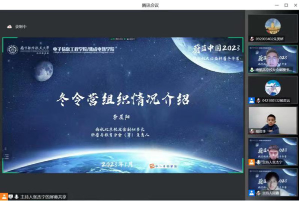2023年1月14日晚,学院联合南航北京员工会员工之家、科普与教育分会(筹)共同开展的“蔚蓝中国2023”航空航天公益科普冬令营正式开营。南航北京员工会副会长、中国北斗三号卫星系统总设计师陈忠贵,嫦娥四号、天问一号探测器系统总设计师孙泽洲,航天五院中国空间站机械臂设计师朱超,南航北京员工会副秘书长、员工之家负责人潘娜,南航北京员工会副秘书长、科普与教育分会(筹)负责人李晨阳,南航威廉希尔官网/集成电路学院团委书记席维唯出席活动并分别致辞。威廉希尔williamhill师生代表、员工及其子女,以及来自江苏、河南、贵州、江西等地员工约180人参加活动。