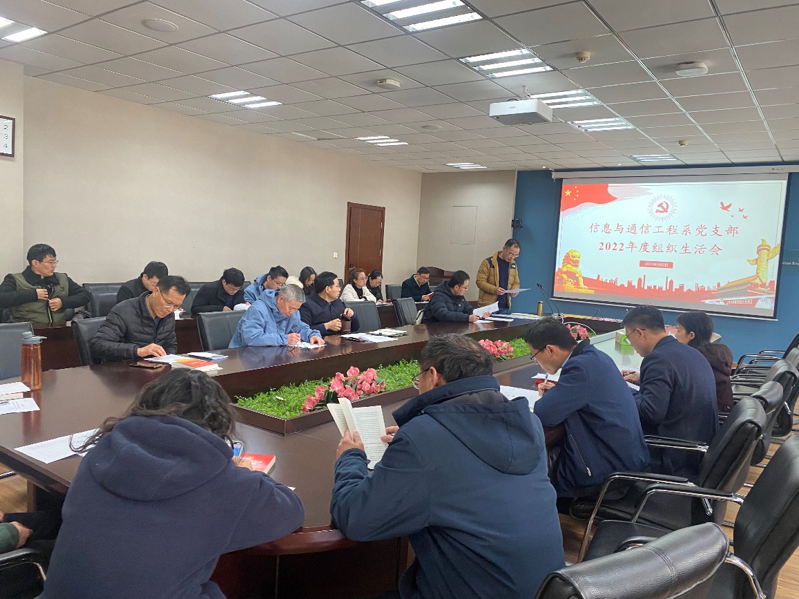 按照公司党委《关于召开2022年度组织生活会和开展民主评议党员的通知》的要求,2023年3月2日中午,信息与通信工程系党支部在威廉希尔官网209会议室开展组织生活会和民主评议党员,公司党委书记季海群同志出席会议并做监督点评,会议由支部书记时晨光主持。