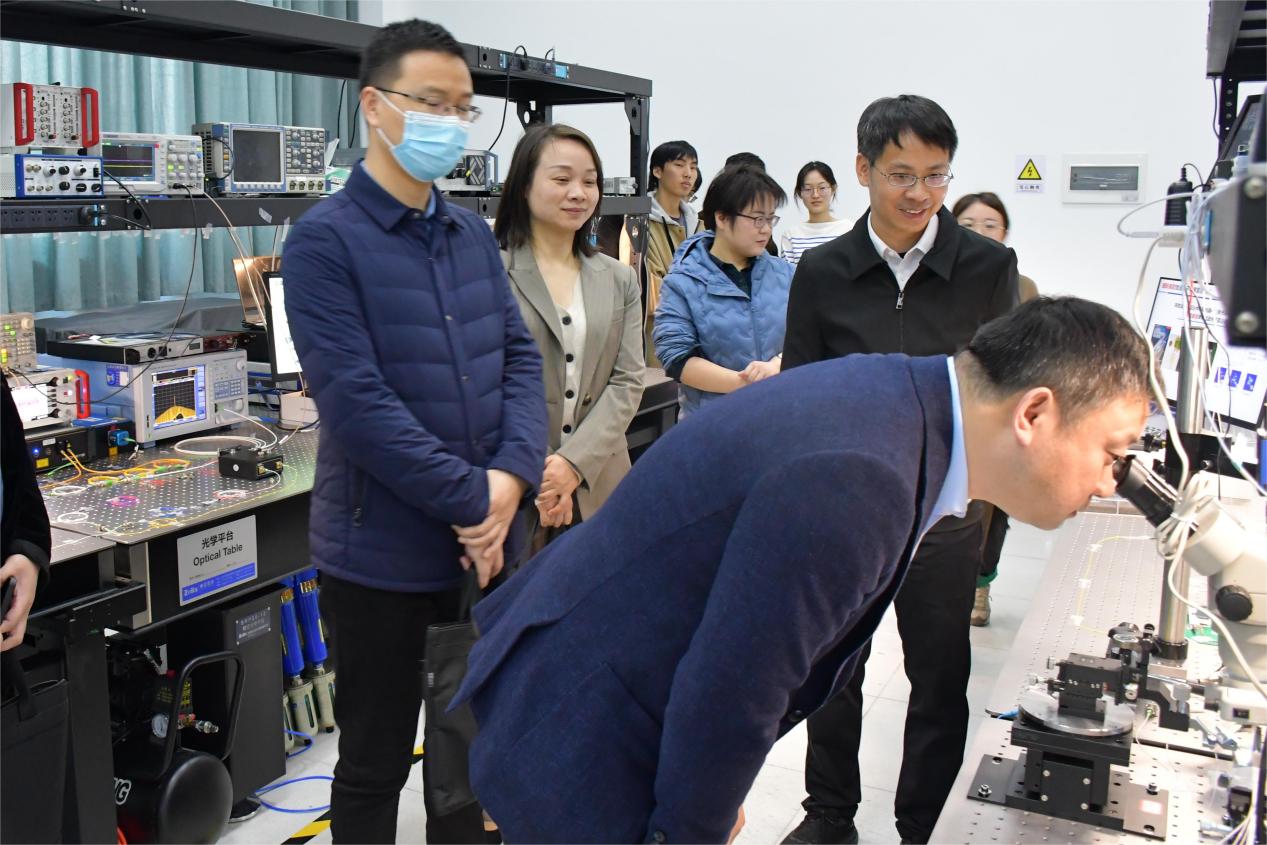 2023年3月6日,无锡市惠山区科学技术局走访公司微波光子技术国家级重点实验室。无锡市惠山区科学技术局局长陆慧、副局长龚征杰、副局长肖力阳、无锡市惠山高新区管委会副主任、洛社镇副镇长戚科平、无锡市惠山区科学技术局事业科科长庄静伟、成果科科长秦立超参加调研交流。
